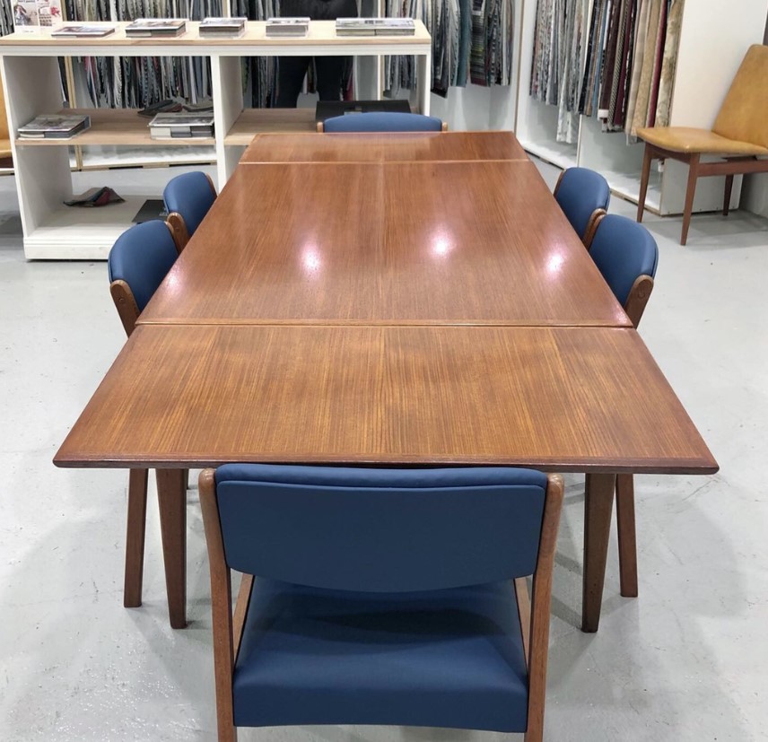 Aubert Furniture is your one-stop-shop for vintage furniture restoration and recover. We specialise in the restoration and reupholstery of mid-century and vintage dining tables and chairs, sideboards, TV chairs, armchairs, daybeds, and sofas. We offer a complete restoration service from start to finish including traditional hand-polishing, detailed repair work, chair repairs, upholstery, and fabric supply.