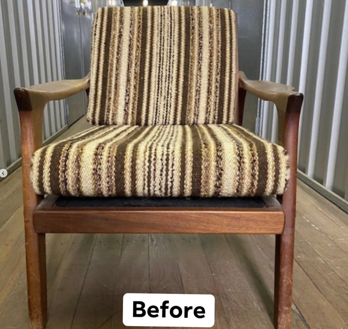 How awesome are these two mid-century 60s recliners we just restored for Angela from Allambie Heights 🤩 Frames required full re-gluing and restoration of the finish. Reupholstered and recovered in Orlando Olive fabric from Wortley.