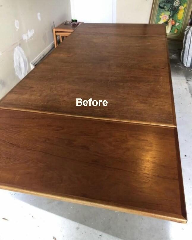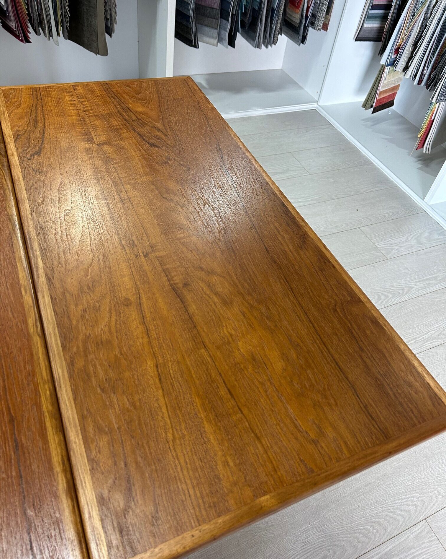 For this table we used Osmo Polyx-Oil in Satin, a premium hardwax-oil which is very durable and perfect for mid-century teak or blackwood furniture. It gives the wood a natural look and feel while adding a gentle, soft sheen. When we restore furniture and polish it in Osmo oil, customers have the option of choosing matte, satin or gloss.